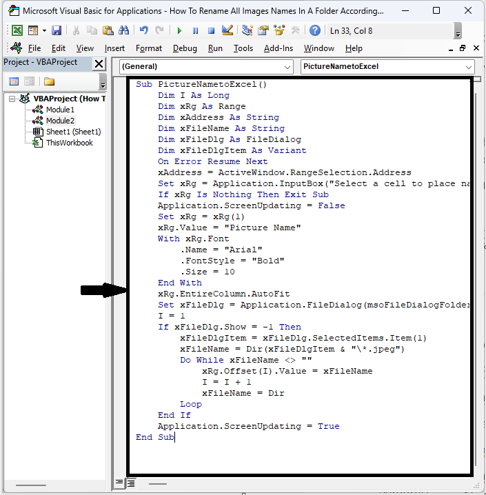 Set xRg = Application.InputBox("Select a cell to place name list:", "Rename All Images", xAddress, , , , , 8)