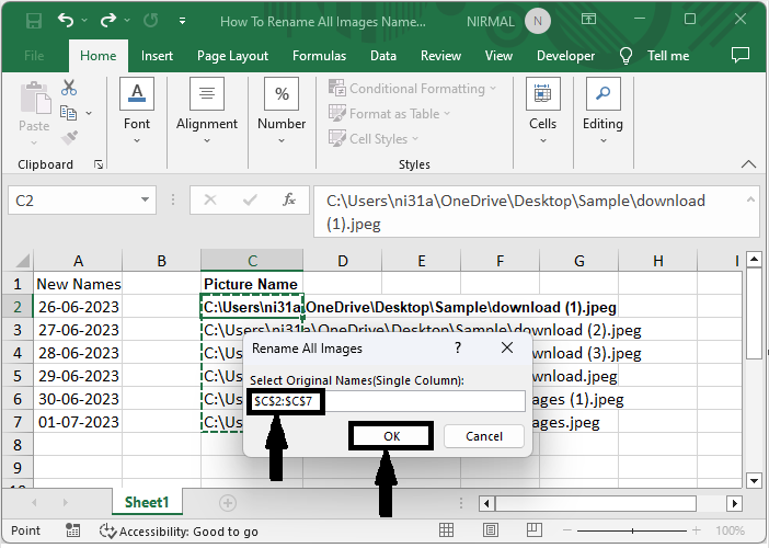 這就是您如何在Excel中重新命名資料夾中的所有影像的方法。