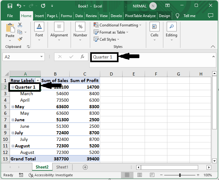 在本教程中,我們使用了一個簡單的示例來演示如何重新命名Excel資料透視表中的組或行標籤以突出顯示特定資料集。