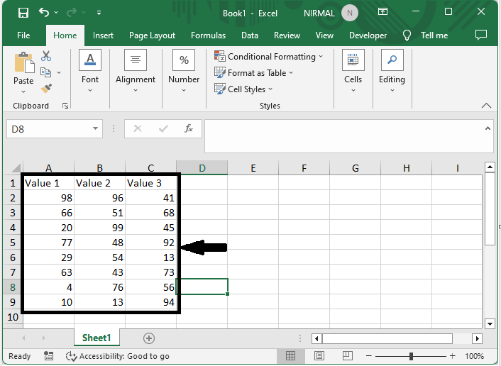 考慮一個 Excel 表格,其中您的資料採用表格格式,類似於下面的影像。
