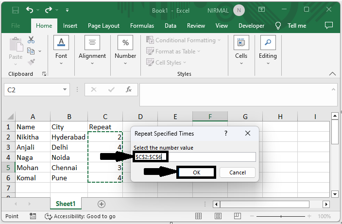 這就是如何在 Excel 中根據列的值重複指定次數的行。