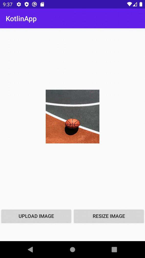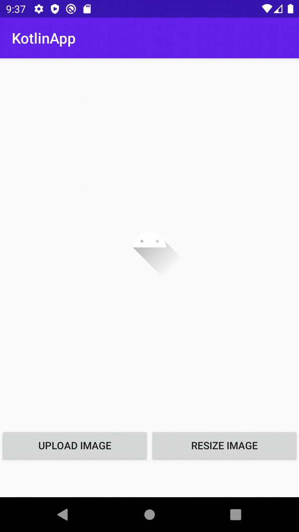 <?xml version="1.0" encoding="utf-8"?> <RelativeLayout xmlns:android="http://schemas.android.com/apk/res/android" xmlns:tools="http://schemas.android.com/tools" android:layout_width="match_parent" android:layout_height="match_parent" tools:context=".MainActivity"> <ImageView android:id="@+id/ivImage" android:layout_width="wrap_content" android:layout_height="500dp" android:layout_centerHorizontal="true" android:contentDescription="@string/app_name" android:src="@drawable/ic_launcher_foreground" /> <LinearLayout android:layout_width="match_parent" android:layout_height="wrap_content" android:layout_below="@+id/ivImage" android:layout_centerHorizontal="true"> <Button android:layout_width="0dp" android:layout_height="wrap_content" android:layout_marginTop="8dp" android:layout_weight="1" android:onClick="uploadImage" android:text="Upload Image" /> <Button android:layout_width="0dp" android:layout_height="wrap_content" android:layout_marginTop="8dp" android:layout_weight="1" android:onClick="resizeImage" android:text="Resize Image" /> </LinearLayout> </RelativeLayout>