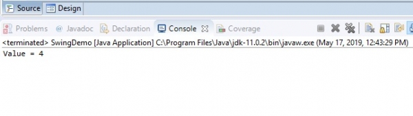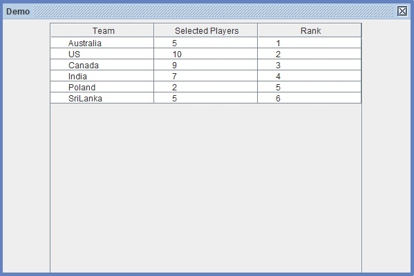 System.out.println("Value = "+ob);以下是一個透過 TableModel 從表單元格中獲取值的示例 −