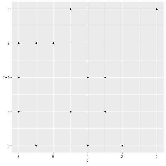 ggplot(df,aes(x,y))+geom_point()+scale_x_reverse(lim=c(8,0))