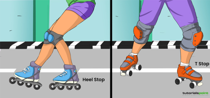 停止是一項重要的技能,可以幫助你保持安全。要停止,你可以使用“腳跟停止”技術。為此,你將體重轉移到溜冰鞋的後部,用腳跟挖地,然後用腳趾推開。隨著你對這項技術的掌握越來越熟練,你可以嘗試不同的風格,例如“腳趾停止”或“T形停止”。