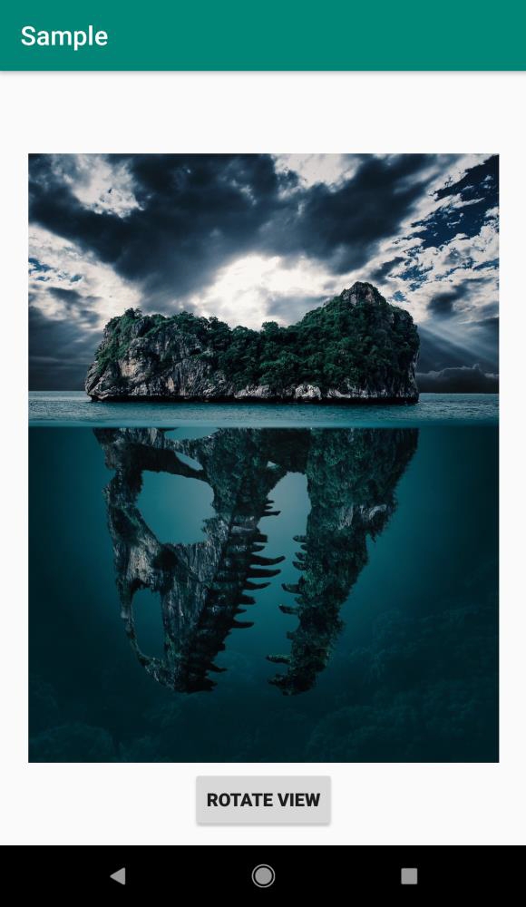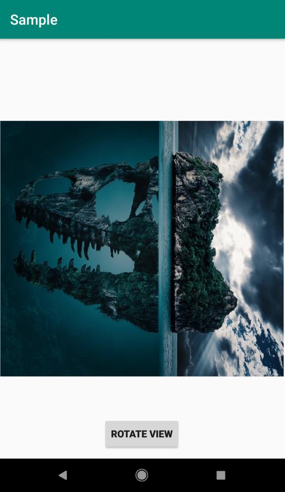 <RelativeLayout xmlns:android="http://schemas.android.com/apk/res/android" xmlns:tools="http://schemas.android.com/tools" android:layout_width="match_parent" android:layout_height="match_parent" android:orientation="vertical" android:padding="2dp" tools:context=".MainActivity"> <ImageView android:id="@+id/imageView" android:layout_width="match_parent" android:layout_height="600dp" android:layout_gravity="center" android:layout_margin="20sp" android:src="@drawable/image"/> <Button android:id="@+id/btnRotate" android:layout_width="wrap_content" android:layout_height="wrap_content" android:layout_centerInParent="true" android:layout_marginTop="20sp" android:text="Rotate View" android:textStyle="bold" android:layout_marginBottom="10dp" android:layout_alignParentBottom="true"/> </RelativeLayout>