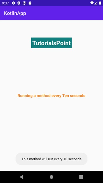 Toast.makeText(this@MainActivity, "This method will run every 10 seconds", Toast.LENGTH_SHORT).show()