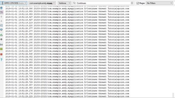 Log.d("Continues thread", "Tutorialspoint.com");