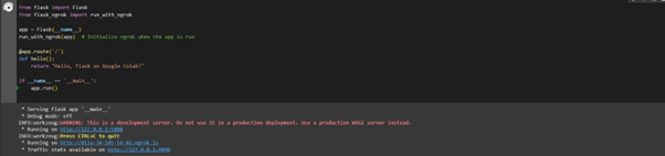 安裝Flask後,讓我們建立一個簡單的Flask應用程式。在新的Colab筆記本單元格中匯入Flask,並指定一個基本路由: