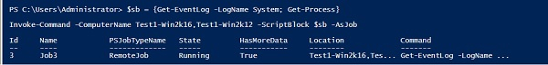Id Name PSJobTypeName State HasMoreData Location -- ---- ------------- ----- ----------- -------- 21 NewJob RemoteJob Completed True Test1-Win2k16,T... 22 Job22 Completed True Test1-Win2k16 23 Job23 Completed True Test1-Win2k12