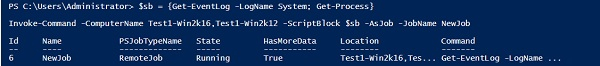 Invoke-Command -ComputerName Test1-Win2k16,Test1-Win2k12 -ScriptBlock $sb -AsJob輸出