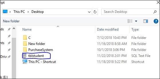之後,您將看到一個選項,供您從磁碟中選擇您的.sql檔案。在我的系統中,該檔案位於桌面。我將選擇與以下螢幕截圖中顯示的相同的“tblstudent”SQL檔案: