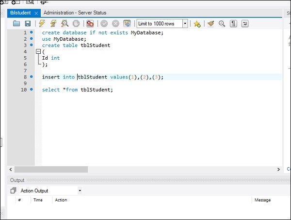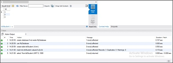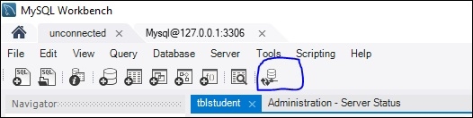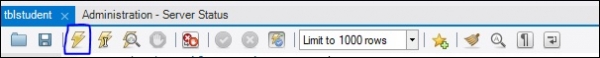 完成上述過程後,將顯示以下螢幕,其中包含我們之前上傳的SQL檔案“tblstudent”:
