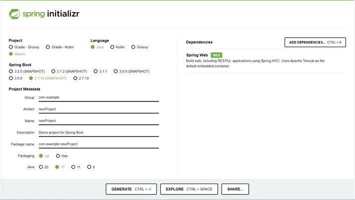 使用提供的連結訪問網站:https://start.spring.io/