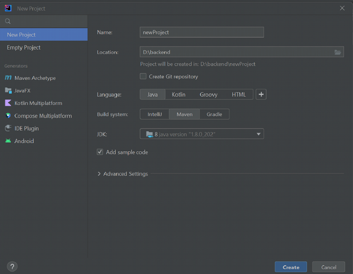 在 IntelliJ 中建立一個新專案。