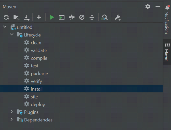 更新 Maven 配置,獲取生命週期部分,然後雙擊生命週期的安裝階段。