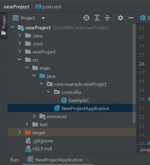 在專案中建立一個控制器包並在其中建立一個名為 ExampleC 的類。該包必須在 newProject -> src/main/java 中建立。