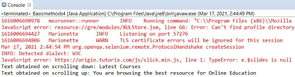 我們可以使用 JavaScript Executor 在 Selenium webdriver 中向下或向上滾動頁面。Selenium 可以使用 executeScript 方法來執行 JavaScript 命令。
