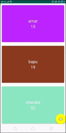 現在點選黃色按鈕滾動到 RecyclerView 的頂部,它將顯示如下結果 -