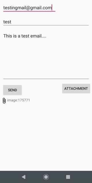 <?xml version="1.0" encoding="utf-8"?> <LinearLayout xmlns:android="http://schemas.android.com/apk/res/android" xmlns:tools="http://schemas.android.com/tools" android:layout_width="match_parent" android:layout_height="wrap_content" android:orientation="vertical" android:padding="4dp" tools:context=".MainActivity"> <EditText android:id="@+id/etTo" android:layout_width="wrap_content" android:layout_height="wrap_content" android:layout_margin="5dp" android:hint="Receiver's Email Address!" android:inputType="textEmailAddress" android:singleLine="true" /> <EditText android:id="@+id/etSubject" android:layout_width="match_parent" android:layout_height="wrap_content" android:layout_margin="5dp" android:hint="Enter Subject" android:singleLine="true" /> <EditText android:id="@+id/etMessage" android:layout_width="match_parent" android:layout_height="200dp" android:layout_margin="5dp" android:gravity="top|start" android:hint="Compose Email" android:inputType="textMultiLine" /> <RelativeLayout android:layout_width="match_parent" android:layout_height="wrap_content"> <Button android:id="@+id/btSend" android:layout_width="80dp" android:layout_height="50dp" android:layout_margin="5dp" android:text="Send" /> <Button android:id="@+id/btAttachment" android:layout_width="wrap_content" android:layout_height="wrap_content" android:layout_alignParentEnd="true" android:text="attachment" /> </RelativeLayout> <TextView android:id="@+id/tvAttachment" android:layout_width="match_parent" android:layout_height="wrap_content" android:drawableStart="@drawable/ic_attach" android:visibility="gone" /> </LinearLayout>