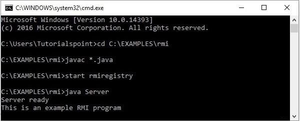 RMI 伺服器程式應該實現遠端介面,或者擴充套件實現類。在這裡,我們應該建立一個遠端物件並將其繫結到 **RMIregistry**。因此,開發如下所示的伺服器程式: