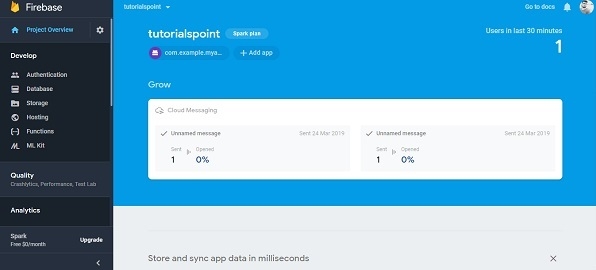 現在選擇你的專案。在這裡,我們有 tutorialspoint 專案。它將直接顯示專案的控制檯頁面,如下圖所示 -