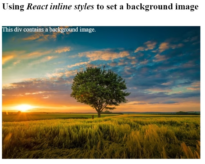 在上面的語法中,我們使用了‘backgroundImage’ CSS屬性來為div元素設定背景圖片。