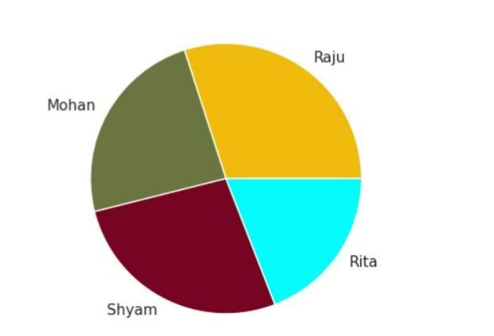 在以下示例中,此程式使用 matplotlib 和 seaborn 庫建立餅圖。然後使用 sns.set() 設定樣式。接下來,定義餅圖的資料,包括每個扇區的標籤和值以及每個區域的顏色。使用 plt.figure() 設定餅圖的大小,然後使用 plt.pie() 繪製餅圖,並使用指定的資料和顏色。使用 plt.axis() 將軸設定為相等,以確保餅圖顯示為圓形。最後,使用 plt.show() 顯示繪圖。