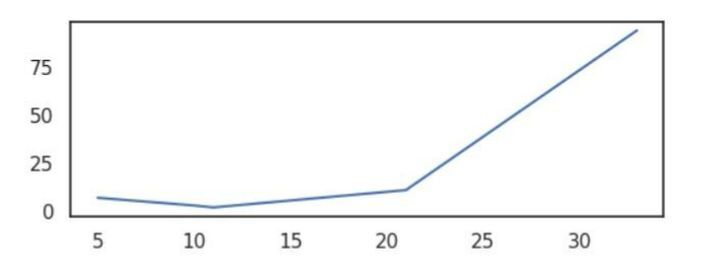 import seaborn as sns import matplotlib.pyplot as plt # Data x_axes = [10, 21, 33, 5, 11] y_axes = [3, 11, 94, 7, 2] # Create a figure and axes with the desired size fig, ax = plt.subplots(figsize=(6, 2)) # Plot the data sns.lineplot(x=x_axes, y=y_axes, ax=ax) plt.show()