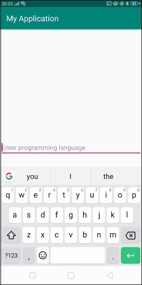 最初,它將顯示如上所示的螢幕,並在該文字檢視中輸入 ja,它將顯示介面卡中的結果,如下所示 -