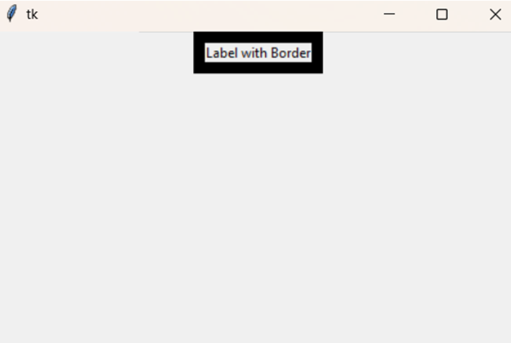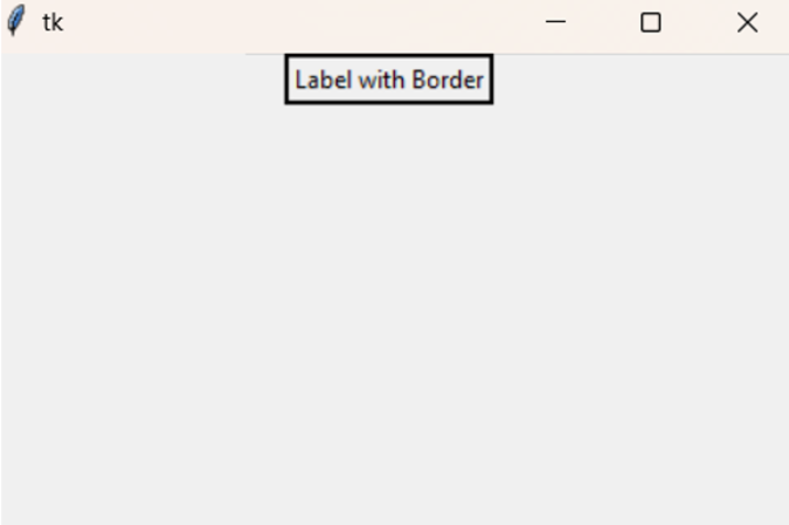 import tkinter as tk root = tk.Tk() label = tk.Label(root, text="Label with Border", bd=10, relief="solid") label.pack() root.mainloop()