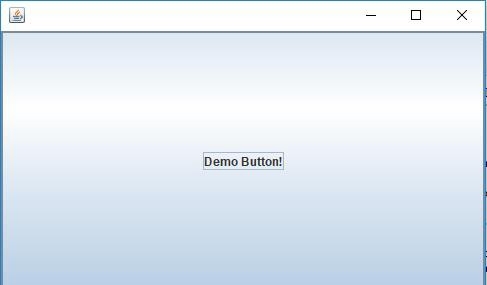 import java.awt.event.ActionEvent; import java.awt.event.ActionListener; import java.awt.event.KeyEvent; import javax.swing.JButton; import javax.swing.JFrame; public class SwingDemo { public static void main(String args[]) { JButton button = new JButton("Demo Button!"); JFrame frame = new JFrame(); frame.setSize(500, 300); frame.setDefaultCloseOperation(JFrame.EXIT_ON_CLOSE); frame.getRootPane().setDefaultButton(button); button.setMnemonic(KeyEvent.VK_A); button.addActionListener(new ActionListener() { public void actionPerformed(ActionEvent ae) { System.out.println("Button pressed!"); button.setEnabled(!button.isEnabled()); } }); frame.add(button); frame.setVisible(true); } }