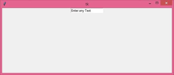 #Import the tkinter library from tkinter import * #Create an instance of tkinter frame win = Tk() #Set the geometry win.geometry("650x250") #Create an Entry Widget entry= Entry(win) entry.insert(END, 'Enter any Text') entry.pack() win.mainloop()