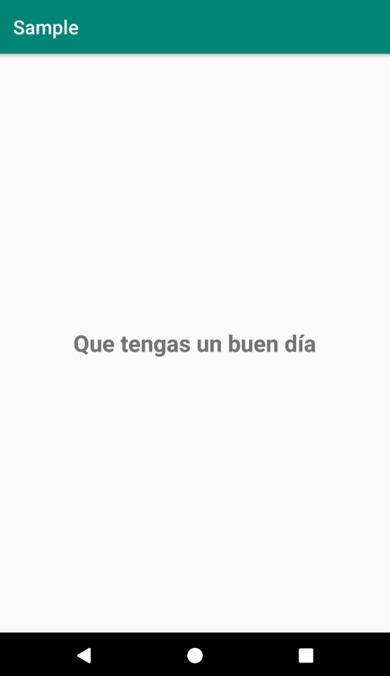 <resources> <string name="app_name">Sample</string> <string name="Have_a_nice_day">Que tengas un buen día</string> </resources>