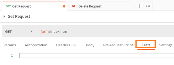 以 JavaScript 方法實現的測試是在 Tests 標籤中編寫的。
