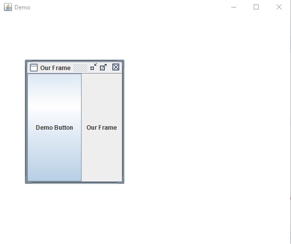 JInternalFrame intFrame = new JInternalFrame("Our Frame", true, true, true, true);