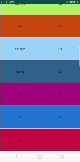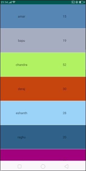此示例演示瞭如何透過建立一個顯示學生姓名和年齡的漂亮學生記錄應用程式來為RecyclerView設定隨機背景。