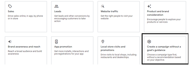 - 步驟 3 − 將開啟一個新頁面。點選建立無需目標受眾的廣告系列(如下所示)。