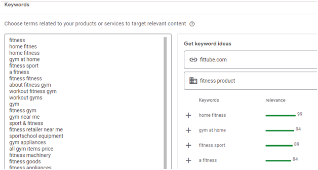 - 步驟 13 − 在同一個常規設定頁面和受眾群體細分部分下方,您會找到關鍵詞部分。點選關鍵詞,您可以選擇與您的產品和服務相關的關鍵詞,並提供您的網站 ID。