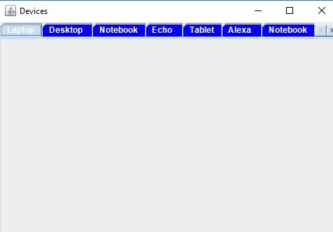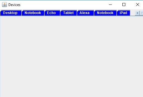 若要在所有選項卡無法在一個運轉中容納時將 TabLayout 策略設定到 Java 中的 JTabbedPane 中,請使用 setTabLayoutPolicy() 方法 -