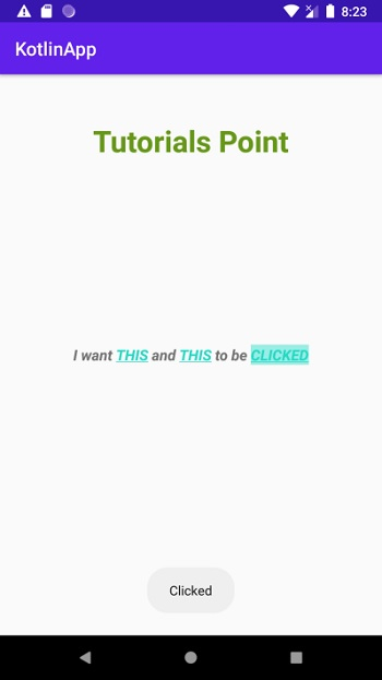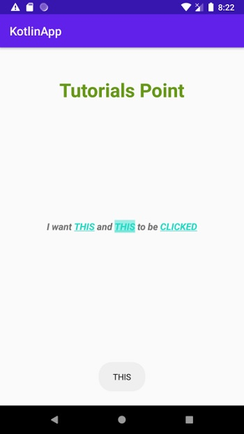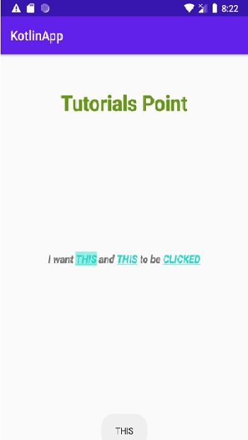 本示例演示如何在 Kotlin 中設定 Android 文字檢視的一部分作為可點選文字。