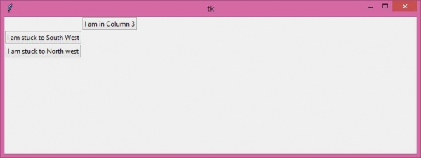 以上程式碼將顯示一個包含一些粘性按鈕的視窗。