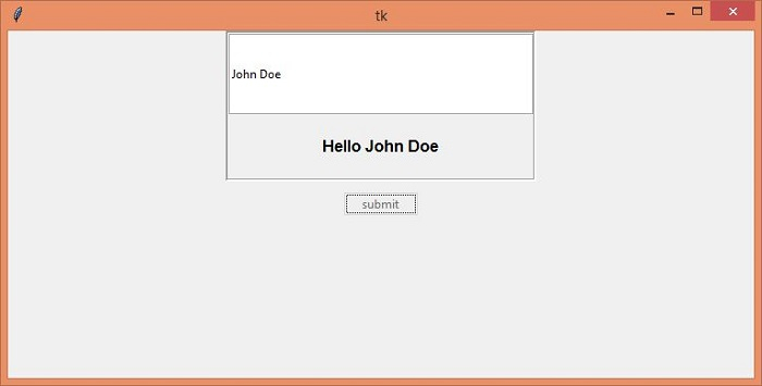 Label(frame, text="Hello "+ entry.get(), font=('Helvetica',12, 'bold')).pack(pady=20)