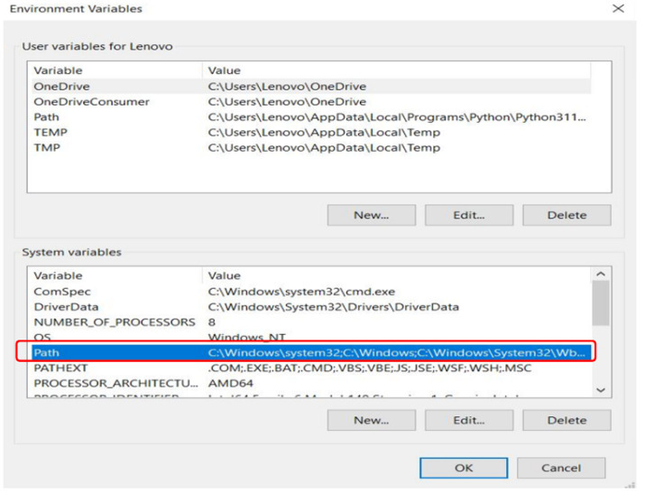 步驟 8 - 環境變數介面開啟,並在系統變數中檢查路徑選項。有以下兩種設定路徑的方法:
