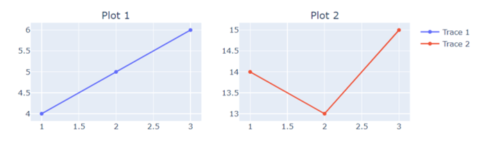 fig.add_trace(go.Scatter(x=[1, 2, 3], y=[14, 13, 15], name="Trace 2"), row=1, col=2)