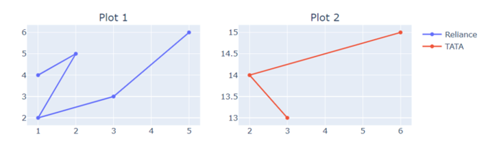 多個子圖透過分配不同的圖形圖來定義。Plotly是一個強大的Python庫,用於建立用於資料研究和演示的互動式視覺化。它能夠建立多個子圖(即放置在一個圖形中的獨立圖)是其主要特性之一。此功能允許我們並排比較和顯示各種資料集或變數,從而簡單地概述資料。在Python中,我們有一些內建函式——add_trace、update_layout和show,可用於使用Plotly在Python中設定帶有分組圖例的多個子圖。