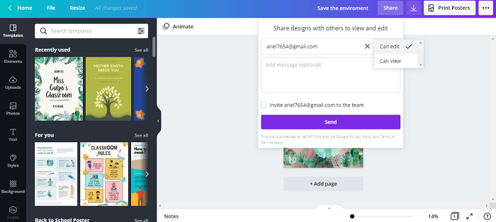 當你希望收件人對你設計的提供一些反饋時,通常會授予檢視許可權;而編輯許可權則允許收件人編輯你的設計。