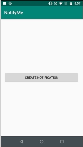 <? xml version = "1.0" encoding = "utf-8" ?> <RelativeLayout xmlns: android = "http://schemas.android.com/apk/res/android" xmlns: tools = "http://schemas.android.com/tools" android :layout_width = "match_parent" android :layout_height = "match_parent" android :padding = "16dp" tools :context = ".MainActivity" > <Button android :id = "@+id/btnCreateNotification" android :layout_width = "wrap_content" android :layout_height = "wrap_content" android :layout_alignParentStart = "true" android :layout_alignParentEnd = "true" android :layout_centerInParent = "true" android :text = "Create Notification" /> </RelativeLayout>