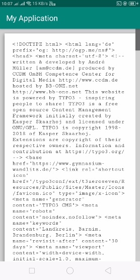 package com.example.myapplication; import android.app.ProgressDialog; import android.os.Build; import android.os.Bundle; import android.support.annotation.RequiresApi; import android.support.v7.app.AppCompatActivity; import android.view.View; import android.webkit.WebChromeClient; import android.webkit.WebSettings; import android.webkit.WebView; import android.webkit.WebViewClient; import android.widget.EditText; public class MainActivity extends AppCompatActivity { @RequiresApi(api = Build.VERSION_CODES.P) @Override protected void onCreate(Bundle savedInstanceState) { super.onCreate(savedInstanceState); setContentView(R.layout.activity_main); final ProgressDialog progressDialog = new ProgressDialog(this); progressDialog.setMessage("Loading Data..."); progressDialog.setCancelable(false); WebView web_view = findViewById(R.id.web_view); web_view.requestFocus(); web_view.getSettings().setJavaScriptEnabled(true); String myPdfUrl = "gymnasium-wandlitz.de/vplan/vplan.pdf"; String url = "https://docs.google.com/viewer?embedded = true&url = "+myPdfUrl; web_view.loadUrl(url); web_view.setWebViewClient(new WebViewClient() { @Override public boolean shouldOverrideUrlLoading(WebView view, String url) { view.loadUrl(url); return true; } }); web_view.setWebChromeClient(new WebChromeClient() { public void onProgressChanged(WebView view, int progress) { if (progress < 100) { progressDialog.show(); } if (progress = = 100) { progressDialog.dismiss(); } } }); } }