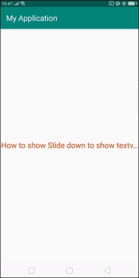 }在上面的程式碼中,我們使用了slide_in_top動畫,所以在anim資料夾中建立一個slide_in_top.xml。在slide_in_top.xml中新增以下程式碼: